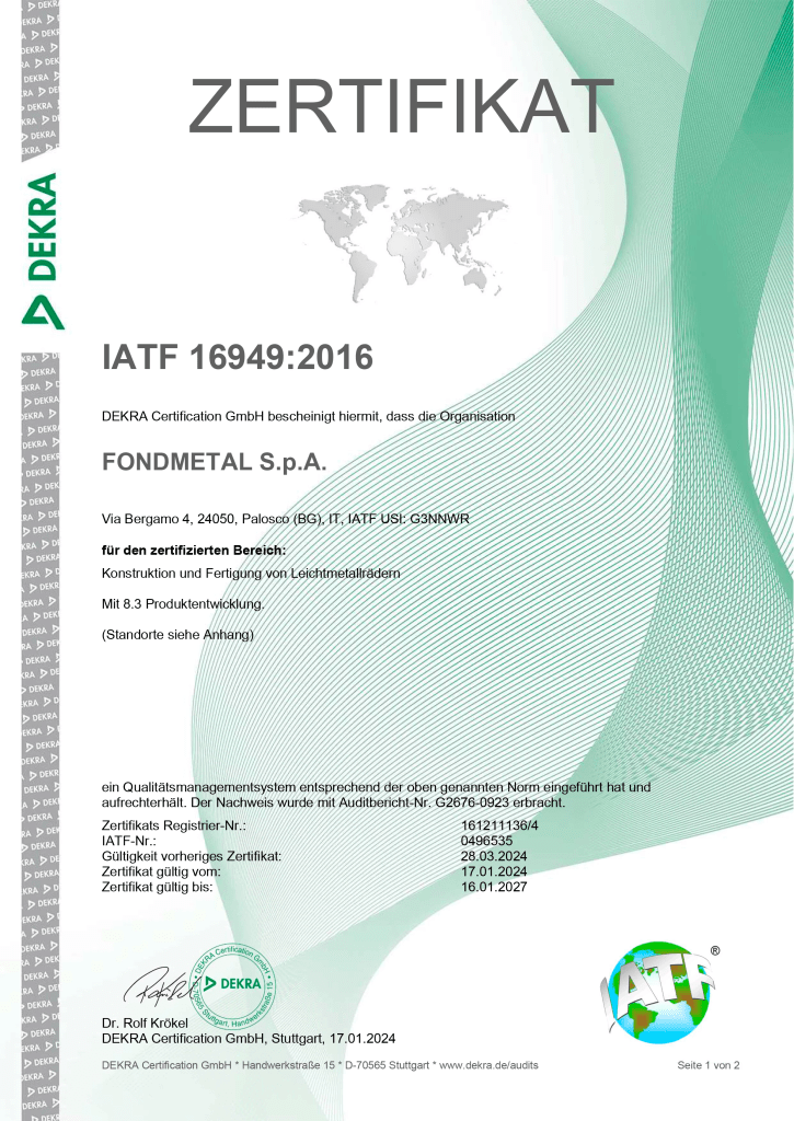 The homologation of the product is obtained through ECE, NAD and ABE certifications which allow Fondmetal S.p.A. to be a leader in the production of light alloy wheels for years.